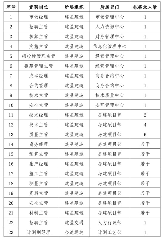 3、其它要求:詳見附件 1:《內部競聘崗位職責與競聘要求》。