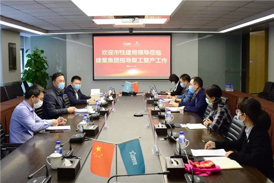 ▲2月26日,市住建局局長方小勇帶隊(duì)走訪建星集團(tuán),重點(diǎn)了解公司疫情防控和復(fù)產(chǎn)復(fù)工情況。要求全力做好應(yīng)急預(yù)案、落實(shí)各項(xiàng)防控舉措,保證防疫物資充足、保障員工生命安全和身體健康。