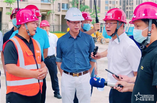 5月29日,佛山市高明區(qū)委副書記、區(qū)長梁耀斌,副區(qū)長蘇仕超一行蒞臨建星集團承建項目美的觀瀾府考察指導安全生產工作。項目經理尹英照陪同。