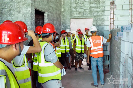 隨后,現(xiàn)場(chǎng)講解員帶領(lǐng)學(xué)員現(xiàn)場(chǎng)觀摩,著重介紹了項(xiàng)目施工過程的整體管理模式、特色亮點(diǎn)環(huán)節(jié)和各個(gè)施工環(huán)節(jié)的細(xì)節(jié)處理方式。