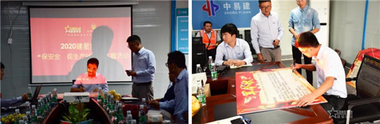 隨后,集團(tuán)副總裁黃鵬與各項(xiàng)目經(jīng)理及相關(guān)安全負(fù)責(zé)人簽訂軍令狀。明確安全責(zé)任和使命,確保公司年度安全管理目標(biāo)的實(shí)現(xiàn)。