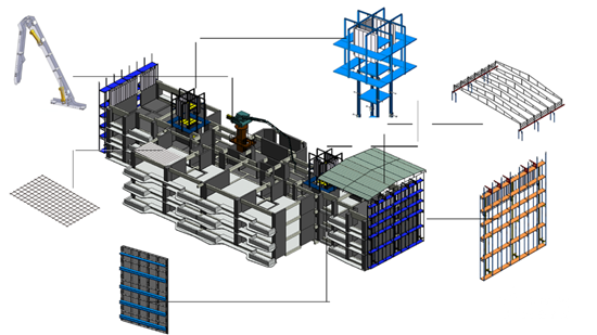 一種全新施工體系,由核心筒自升爬模組成的大模板體系、成品鋼筋網(wǎng)片機(jī)械安裝體系、自動(dòng)伸縮遮陽雨棚系統(tǒng)共同組成的智能建造體系。該體系應(yīng)用于施工現(xiàn)場,安裝于樓層作業(yè)面。優(yōu)勢是提高勞動(dòng)效率、降低成本、加快施工周期,提高施工質(zhì)量,同時(shí)施工安全性得到保障。通過各裝置之間聯(lián)動(dòng)工作,使得工地?cái)?shù)字化、在線化、智能化,項(xiàng)目實(shí)施與企業(yè)管理達(dá)到良好的組合效果。
