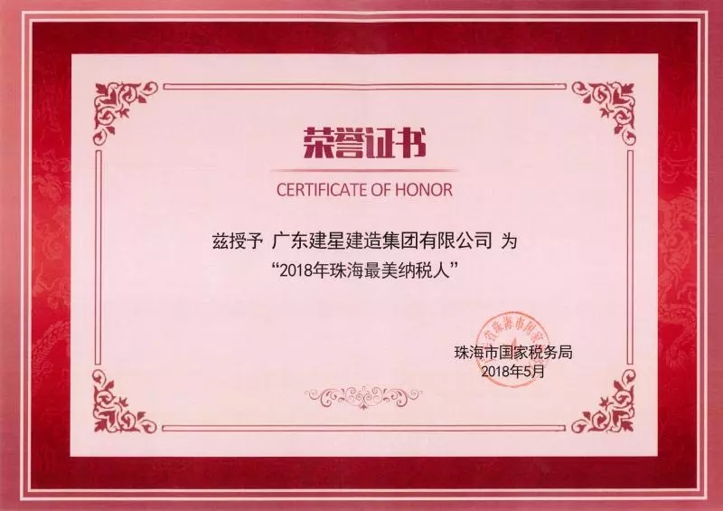 近日,建星集團喜訊頻傳,被珠海市國家稅務局授予“2018年最美納稅人”榮譽稱號,安全生產工作貢獻突出被珠海市住房和城鄉建設局通報表揚。