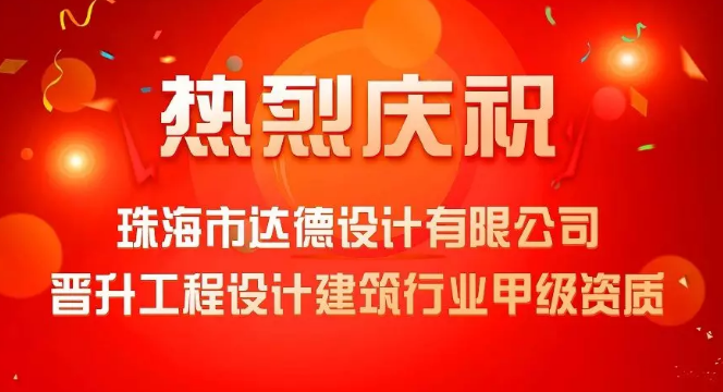 喜訊!珠海市達德設計有限公司成功晉升工程設計建筑行業甲級資質