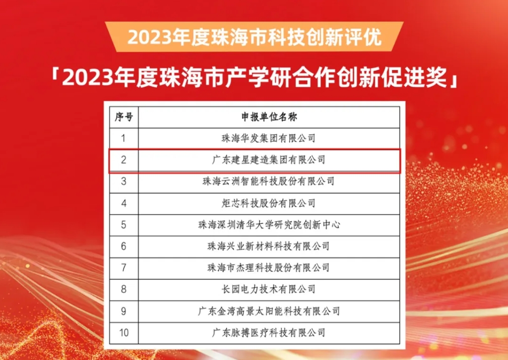 2023年度珠海市科技創新評優結果公布,建星集團榮獲兩項榮譽