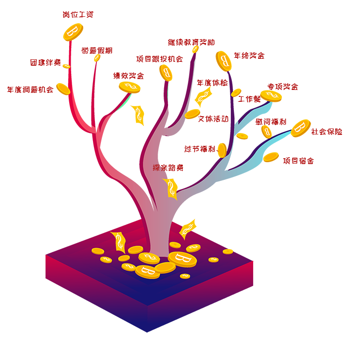 為價值、為貢獻付薪以崗位價值、個人能力與業(yè)績貢獻為基礎(chǔ)的薪酬管理體系;崗位工資、績效獎金、年終獎金、專項獎金、年度調(diào)薪機會、項目跟投機會等等;