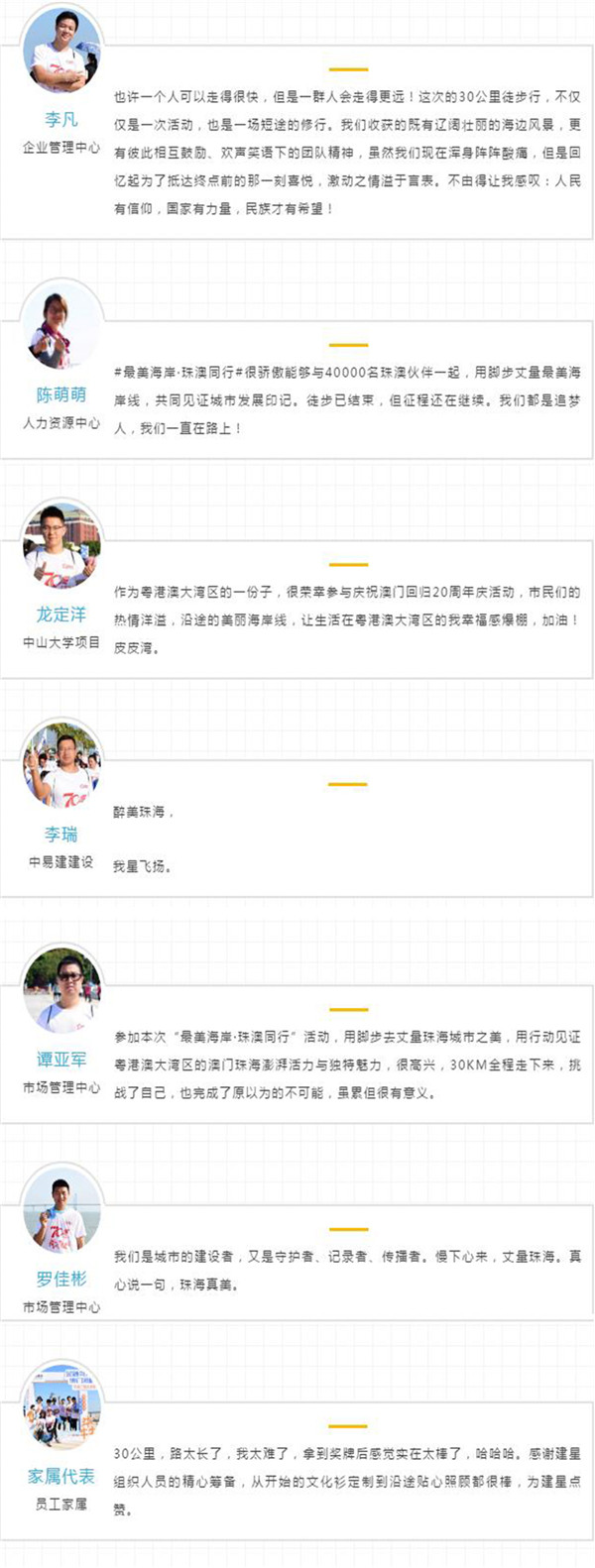 30公里徒步,我們做到了。人生無悔,青春無悔,奮斗的青春最美麗!澳門回歸祖國20周年,讓我們一起祝福,澳門和珠海的明天更加美好!