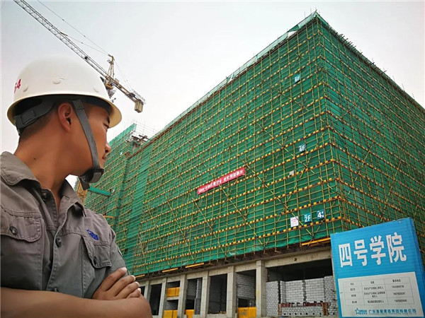珠海的天氣高溫多雨,潮濕漫長。從四季分明的城市來到這里,起初我特別不適應(yīng)。每天的戶外一線施工作業(yè)對我而言如同蒸了整整一天的桑拿,毒辣的太陽、汗?jié)竦墓ひ掠绕渥屓四臒┰?。然而高空作業(yè)注意力必須高度集中,容不得一點(diǎn)馬虎和疏漏。當(dāng)時(shí)心里就一個(gè)想法,無論遇到什么困難,必須堅(jiān)持下去,為項(xiàng)目高質(zhì)量完成保駕護(hù)航。整個(gè)漫長的夏天從開始的咬牙堅(jiān)持到逐漸的適應(yīng),四號(hào)學(xué)院就像一個(gè)我親手養(yǎng)育的孩子慢慢長大成人。